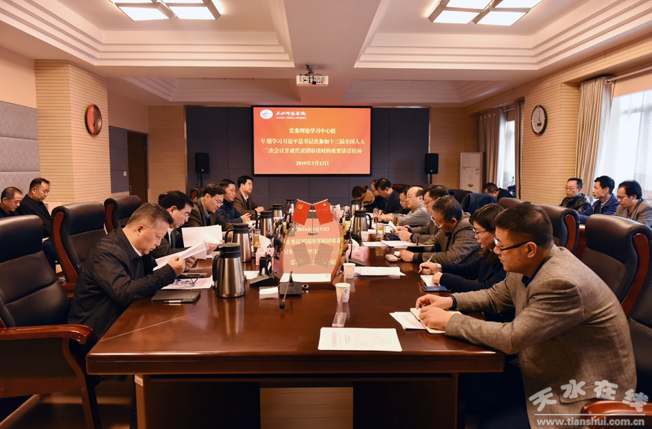 3月13日下午,天水師范學(xué)院召開黨委理論中心組(擴(kuò)大)學(xué)習(xí)會(huì),專題學(xué)習(xí)習(xí)近平總書記在參加十三屆全國人大二次會(huì)議甘肅代表團(tuán)審議時(shí)的重要講話精神。會(huì)議由黨委書記李正元主持,全體黨委委員和黨委工作部門、各中層黨組織書記共40余人參加學(xué)習(xí)。