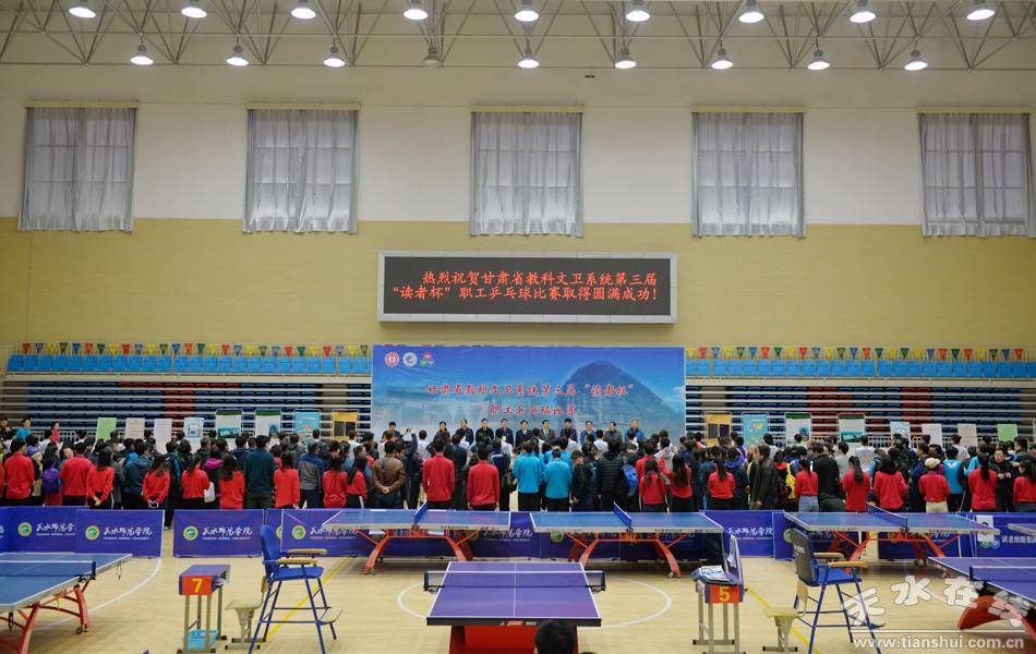 3月21日至24日,由甘肅省教科文衛(wèi)工會主辦、天水師范學院承辦的甘肅省教科文衛(wèi)系統(tǒng)第三屆“讀者杯”職工乒乓球賽在天水師范學院綜合體育館舉行。