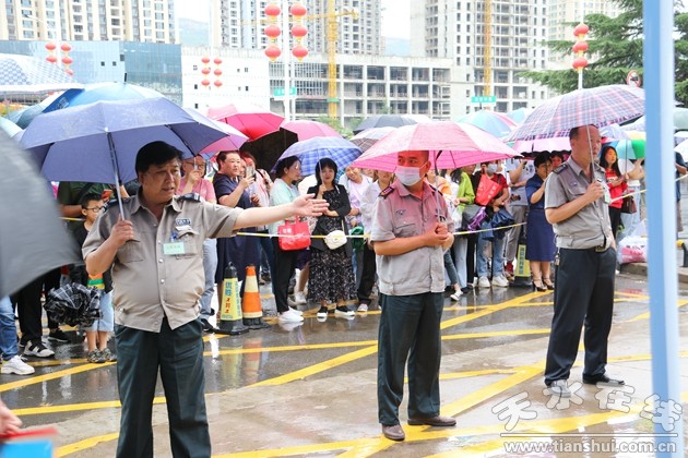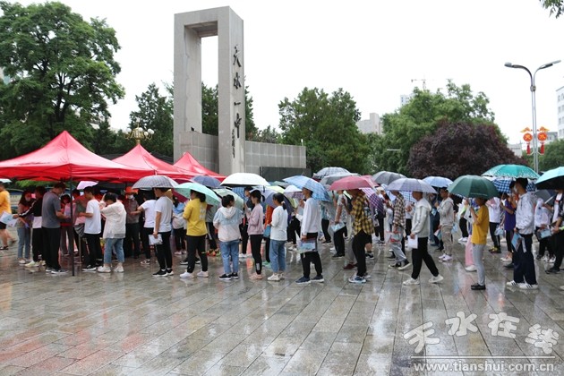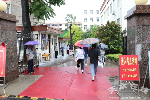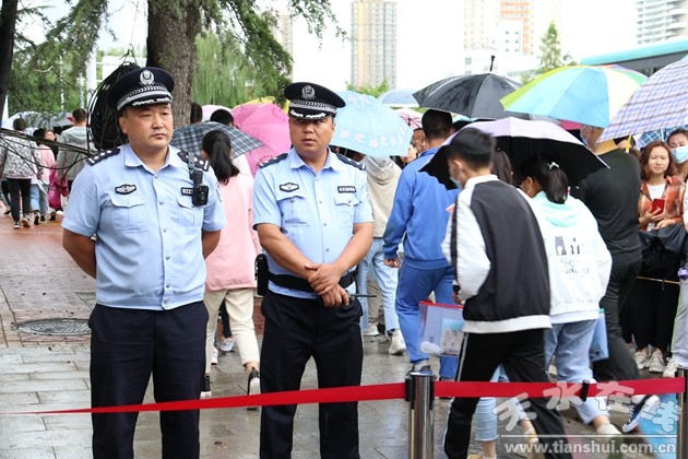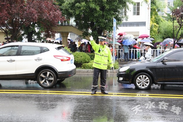 多方持續(xù)發(fā)力,打造平安中考。中考期間,市招考委各成員單位繼續(xù)投入大量人力物力,提供高效快捷的服務(wù), 天水市公安機關(guān)出動警力警車值守考點,全面維護考點及周邊環(huán)境;衛(wèi)健部門為每個考點配備醫(yī)護人員,全方位提供專業(yè)保障;交通運輸、環(huán)保、文旅、住建、城管執(zhí)法等部門聯(lián)動,全力為考生創(chuàng)造一個安心、舒適的考試環(huán)境。7月18日,我市普降中雨,考生冒雨趕考,許多家長送孩子安全到達考點,并打傘在考點外靜候,各考點為考生提供快捷便利的服務(wù),公安干警和交警在雨中值守,指揮交通,維護秩序,為考生逐夢加油鼓勁,充分體現(xiàn)了關(guān)愛考生、服務(wù)考生的理念,通過全社會的共同努力,全面實現(xiàn)了“平安中考”的目標(biāo)。