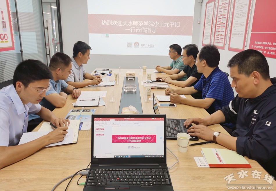 7月21日,天水師院黨委書記李正元帶隊(duì)赴五礦二十三冶建設(shè)集團(tuán)有限公司西南區(qū)域總部調(diào)研校企合作、實(shí)習(xí)就業(yè)等工作。