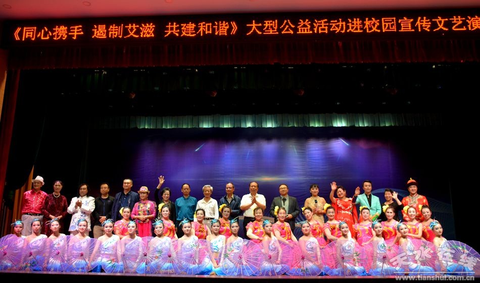 9月17日,由天水市秦州區(qū)疾控中心主辦,天水天驕藝術(shù)團、天水天磊文化傳媒公司承辦并由天水市職業(yè)技術(shù)學(xué)校協(xié)辦的“同心攜手 遏制艾滋 共建和諧'大型公益活動進校園文藝演出在天水職業(yè)技術(shù)學(xué)校本部舉行。
