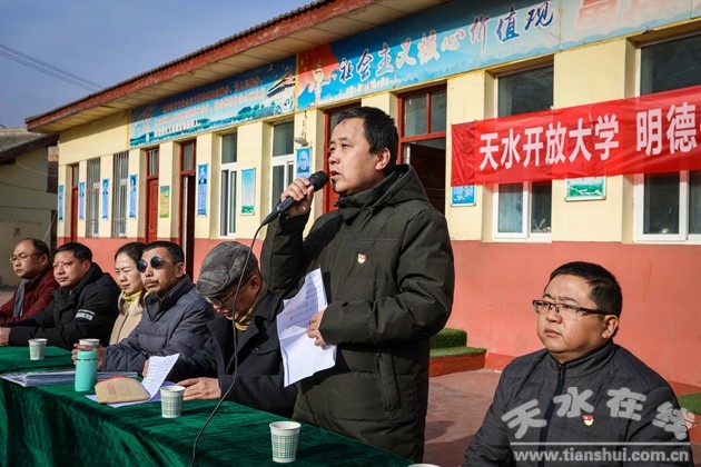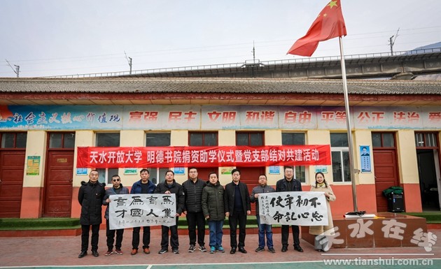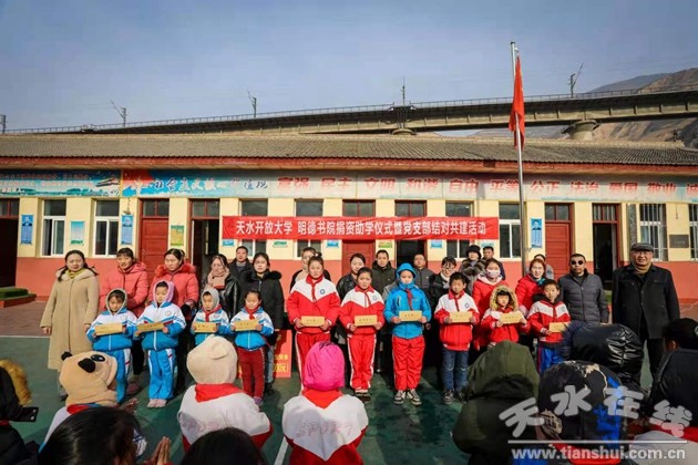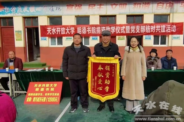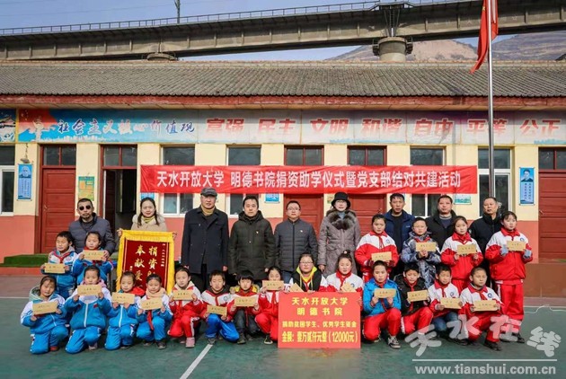12月22日上午,由天水明德書院主辦、天水開放大學(xué)社區(qū)教育學(xué)院協(xié)辦的第二屆“天水書畫名家、企業(yè)家共獻(xiàn)愛心捐資助學(xué)”活動捐款儀式在麥積區(qū)三岔鎮(zhèn)水關(guān)村小學(xué)如期舉行。