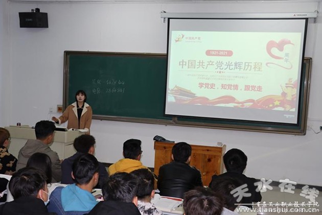 為慶祝中國共產(chǎn)黨成立100周年,2020-2021學(xué)年春季開學(xué)之際,甘肅工業(yè)職業(yè)技術(shù)學(xué)院圍繞“學(xué)黨史,知黨情,跟黨走”開展了“小課堂·大情懷”開學(xué)第一課活動。活動切實將課程思政與專業(yè)教育相融合,引領(lǐng)青年學(xué)生積極響應(yīng)黨中央號召,深入領(lǐng)會習(xí)近平總書記重要講話精神,學(xué)黨史、悟思想,從黨的歷史中汲取強大精神力量和成長智慧。