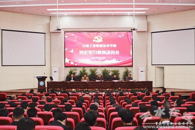 為深入學(xué)習(xí)貫徹習(xí)近平總書記在黨史學(xué)習(xí)教育動(dòng)員大會(huì)上的重要講話精神,按照黨中央決策部署和省委、省委教育工委工作要求,3月12日下午,甘肅工業(yè)職業(yè)技術(shù)學(xué)院在圖書館智敏學(xué)術(shù)報(bào)告廳召開黨史學(xué)習(xí)教育動(dòng)員大會(huì)。學(xué)校黨委班子成員、科級(jí)及以上干部、全校師生黨員、專職輔導(dǎo)員、馬克思主義學(xué)院專職教師、“1231”工程學(xué)生和團(tuán)學(xué)干部代表共200多人參加會(huì)議,校黨委書記楊聲作動(dòng)員講話,院長(zhǎng)安建平主持會(huì)議。