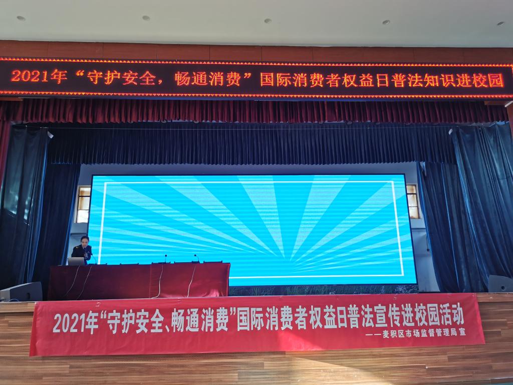 活動(dòng)期間,麥積區(qū)市場(chǎng)監(jiān)督管理局宣教股股長(zhǎng)管文婷通過(guò)“網(wǎng)絡(luò)購(gòu)物平臺(tái)消費(fèi)維權(quán)、直播帶貨良莠不齊、末端投遞服務(wù)不規(guī)范、購(gòu)買(mǎi)網(wǎng)絡(luò)課程消費(fèi)維權(quán)、美容院靠空頭承諾賣(mài)卡卻不兌現(xiàn)”等5個(gè)方面典型案例,對(duì)消費(fèi)及法律知識(shí)向師生進(jìn)行了系統(tǒng)培訓(xùn)與普及,教育引導(dǎo)師生科學(xué)、理性、安全消費(fèi),進(jìn)一步增強(qiáng)質(zhì)量安全意識(shí),提升安全防范能力,提高自我保護(hù)意識(shí)。