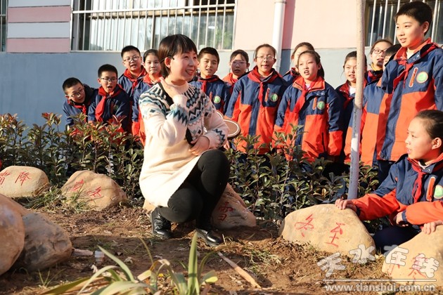 在校園的“二十四節(jié)氣石”前,楊曉莉老師給孩子們介紹有關(guān)冬至的文化習(xí)俗,并帶領(lǐng)孩子們學(xué)唱了《二十四節(jié)氣歌》,美妙的旋律環(huán)繞在了美麗的校園。