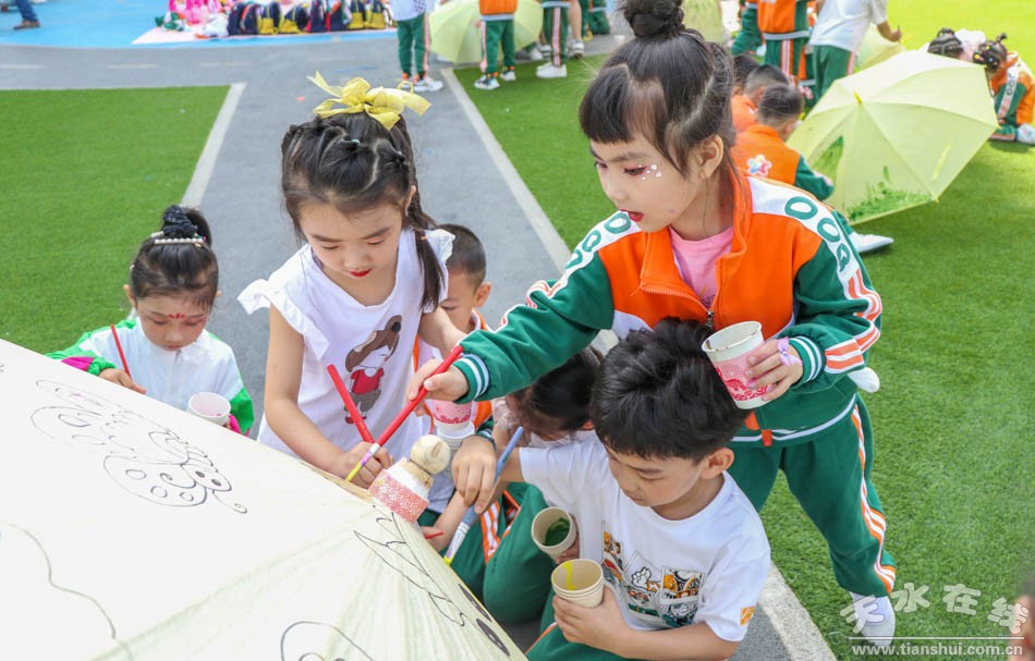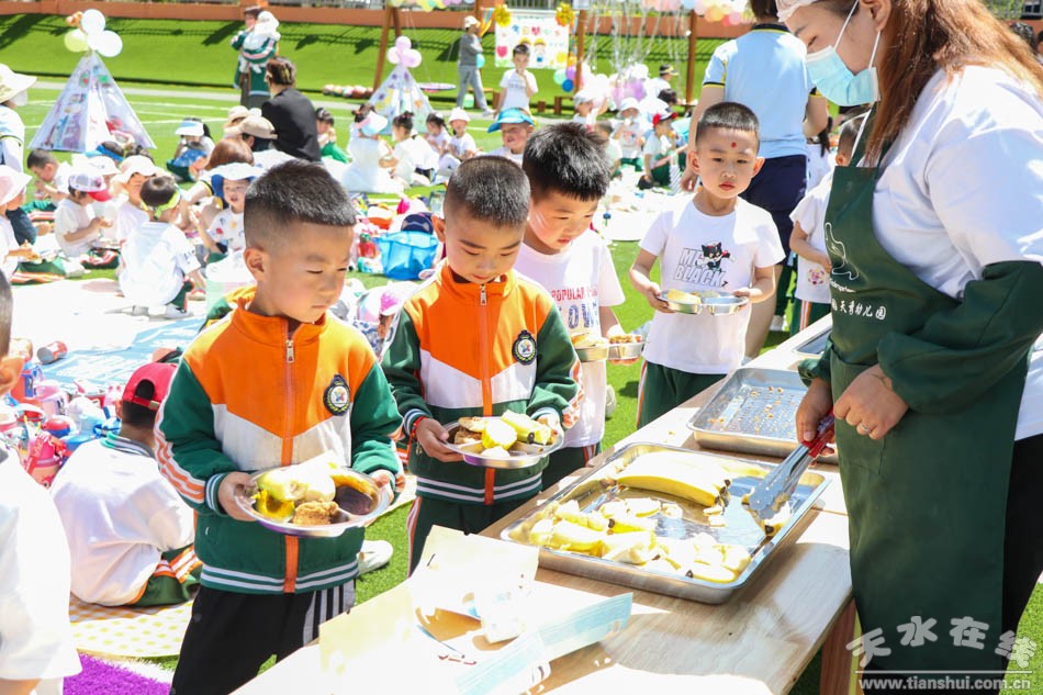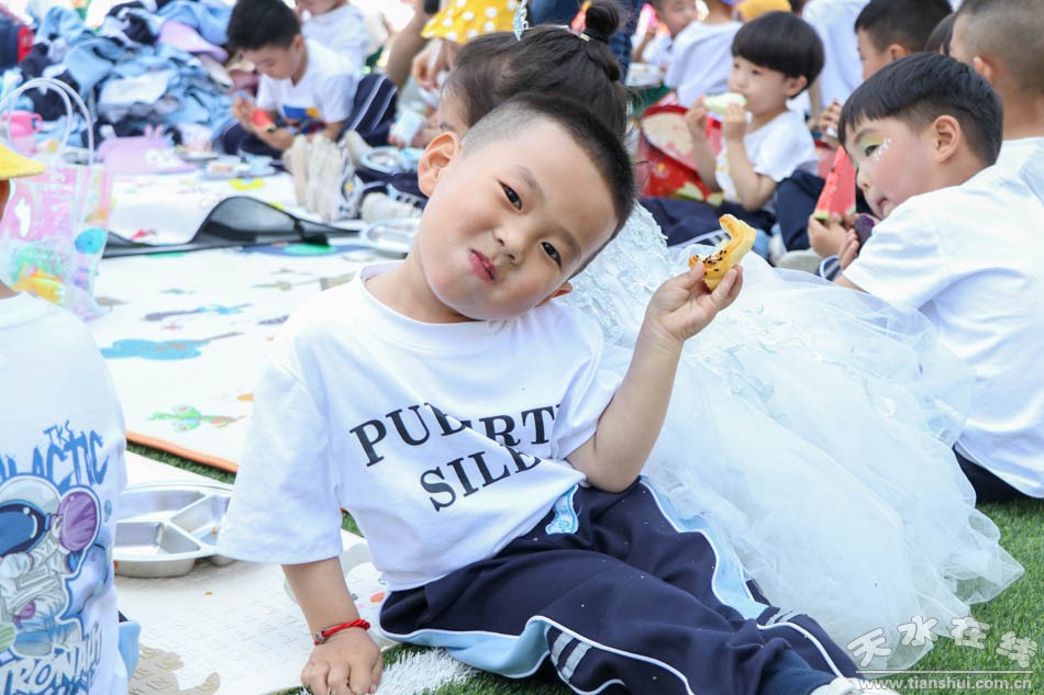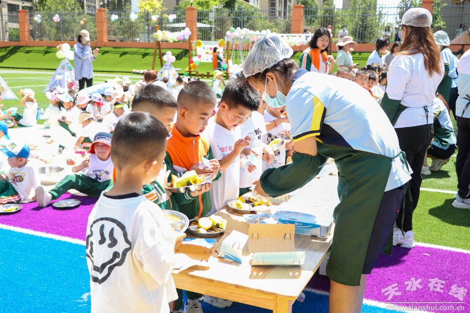 入場儀式完畢后,伴隨著國旗的冉冉升起,小朋友們目視前方,右手握拳進(jìn)行了宣誓。在文藝匯演中,孩子們用動感的籃球、可愛的呼啦圈、勇者的跳繩、五彩的畫筆來慶祝自己的節(jié)日。游戲節(jié)目表演完畢后,幼兒園還為小朋友準(zhǔn)備了豐盛的美食。