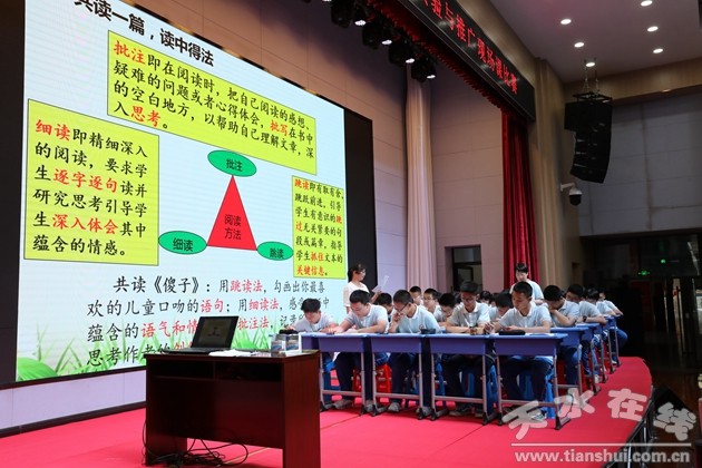 6月26日至28日,天水市教育局分別在秦州區(qū)建二小學(xué)、市逸夫?qū)嶒?yàn)中學(xué)舉辦了義務(wù)教育學(xué)段“群文閱讀”現(xiàn)場(chǎng)優(yōu)質(zhì)課比賽活動(dòng),集中展示全市“群文閱讀”取得的階段性成果,探索“群文閱讀”課堂教學(xué)的有效途徑。