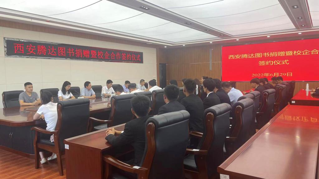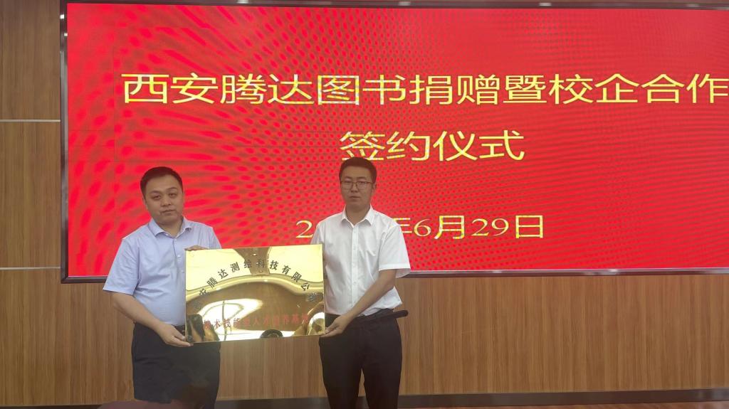 活動(dòng)中,西安騰達(dá)測(cè)繪科技有限公司為學(xué)院捐贈(zèng)圖書5000冊(cè);張升與測(cè)繪工程學(xué)院院長(zhǎng)趙淑湘共同簽訂了《校企合作協(xié)議書》;張升為我院授牌“西安騰達(dá)測(cè)繪科技有限公司技能型人才培養(yǎng)基地”。
