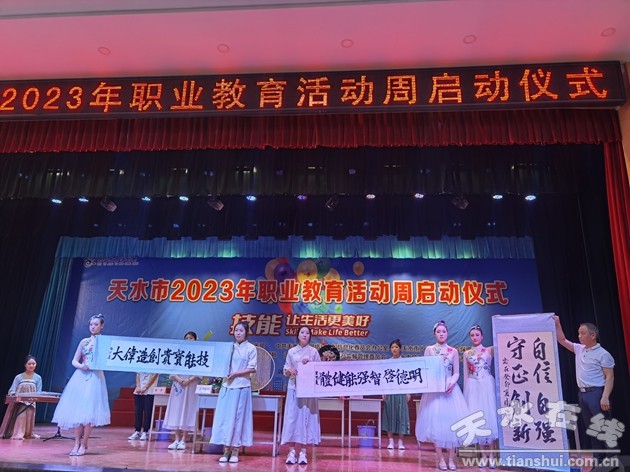在啟動(dòng)儀式上,市委教育工委書記、市教育局黨組書記楊瑞峰講話并宣布天水市2023年職業(yè)教育活動(dòng)周正式啟動(dòng);市教育局局長(zhǎng)沈建玲通報(bào)了參加2023年省級(jí)技能大賽獲獎(jiǎng)情況;市教育局副局長(zhǎng)謝建平宣布了天水市職業(yè)啟蒙勞動(dòng)教育基地建設(shè)學(xué)校名單。