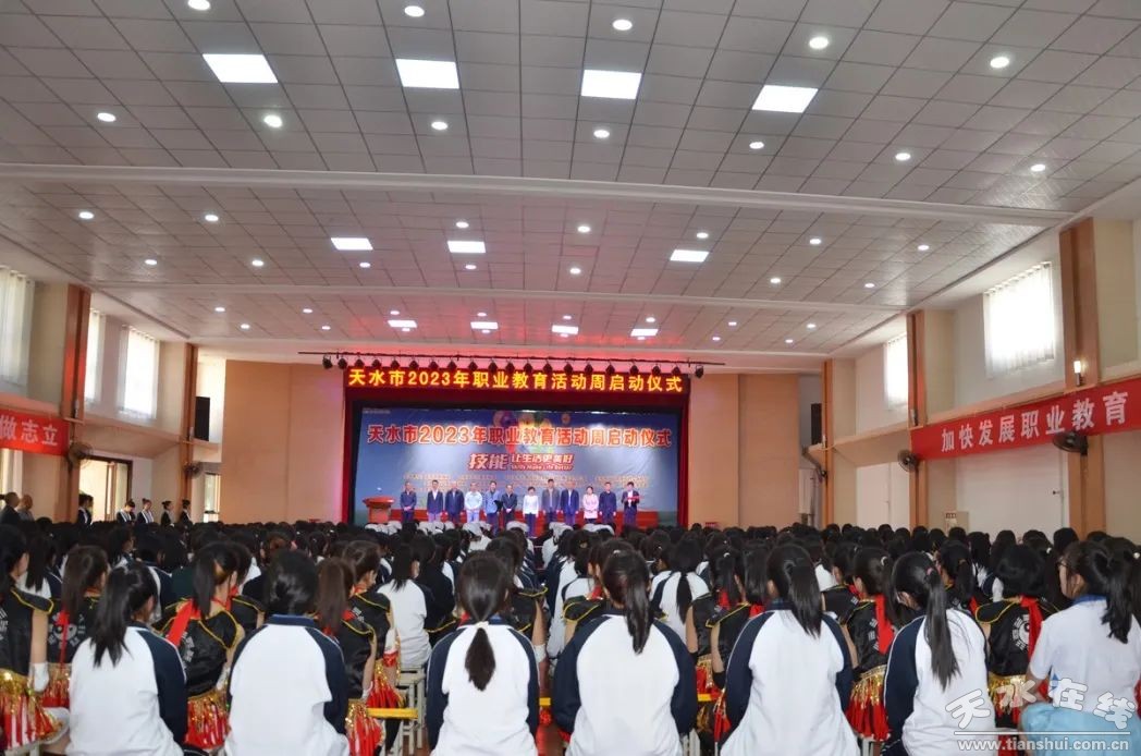 5月16日上午,天水市2023年職業(yè)教育活動周啟動儀式在我校隆重舉行。儀式由市教育局副局長謝建平主持,市委教育工委書記、市教育局黨組書記楊瑞峰,市教育局局長沈建玲,市委宣傳部、市委網(wǎng)信辦、市工信局、市人社局、市農(nóng)業(yè)農(nóng)村局、市政府國資委、市總工會、團市委相關(guān)負責同志,各縣(區(qū))教育局分管同志、各中職學校校長、職普融通試點普通高中學校校長、師生代表等共計1000余人參加了啟動儀式。