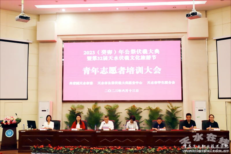 6月13日,2023(癸卯)年公祭中華人文始祖伏羲大典暨第32屆天水伏羲文化旅游節(jié)青年志愿者培訓(xùn)大會(huì)在甘肅工業(yè)職業(yè)技術(shù)學(xué)院圖書館5樓報(bào)告廳舉行。團(tuán)市委副書記蔣露、天水市公祭伏羲大典服務(wù)中心副主任劉晉、團(tuán)市委學(xué)少部、天水市公祭伏羲大典服務(wù)中心節(jié)會(huì)科及甘肅工業(yè)職業(yè)技術(shù)學(xué)院團(tuán)委負(fù)責(zé)人等出席培訓(xùn)會(huì),來自各二級(jí)學(xué)院的180名青年志愿者參加培訓(xùn)并宣誓。培訓(xùn)會(huì)由市學(xué)聯(lián)秘書長(zhǎng)何新宇主持。