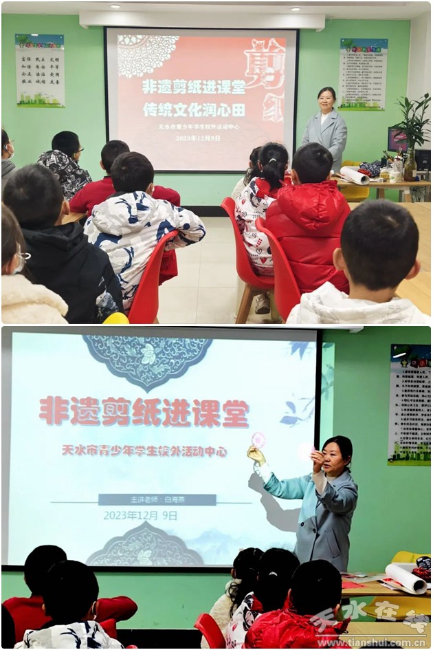 市青少年學(xué)生校外活動(dòng)中心特邀天水市秦州區(qū)剪紙藝術(shù)傳承人白海燕老師走進(jìn)課堂,展示中國傳統(tǒng)剪紙藝術(shù)之精華,讓孩子們近距離感受非物質(zhì)文化遺產(chǎn)的獨(dú)特魅力。