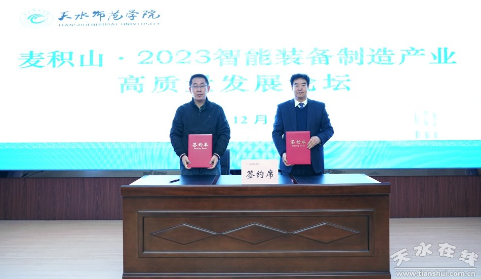 為全面貫徹落實(shí)制造強(qiáng)國(guó)戰(zhàn)略,以及我省“強(qiáng)工業(yè)”行動(dòng)和天水市工業(yè)強(qiáng)市戰(zhàn)略,深化“城校共生”模式,搭建校企合作、產(chǎn)教融合創(chuàng)新平臺(tái),共同推動(dòng)地方裝備制造業(yè)高質(zhì)量發(fā)展。12月9日,由天水師范學(xué)院主辦,天水師范學(xué)院機(jī)電與汽車工程學(xué)院和天水師范學(xué)院智能裝備制造產(chǎn)業(yè)研究院承辦,天水市科技局、天水市工業(yè)和信息化局、天水市科學(xué)技術(shù)協(xié)會(huì)、天水星火機(jī)床有限責(zé)任公司、甘肅海林中科科技股份有限公司協(xié)辦的“麥積山·2023智能裝備制造產(chǎn)業(yè)高質(zhì)量發(fā)展論壇”在天水師范學(xué)院舉辦。