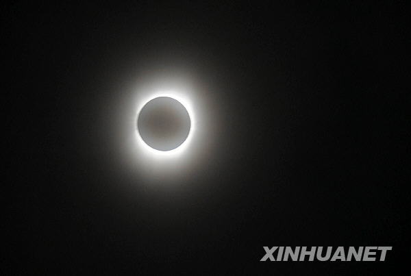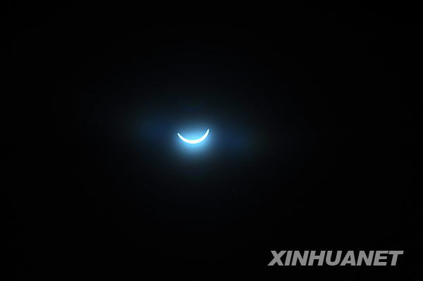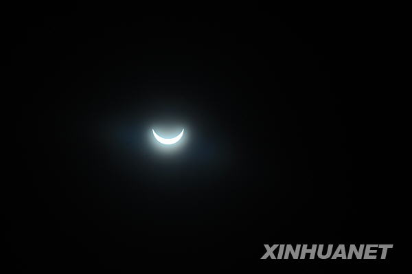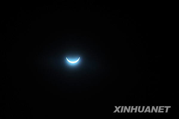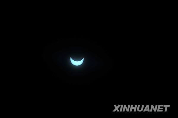 7月22日上午9時(shí)16分,在重慶大學(xué)虎溪校區(qū)拍攝到日全食。新華社記者 周衡義 攝