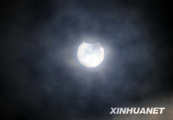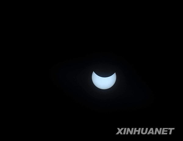 7月22日上午9時(shí)07分,在重慶大學(xué)虎溪校區(qū)拍攝到日食。新華社記者 周衡義 攝