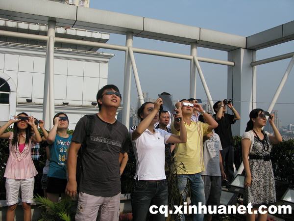 重慶的市民用各種方式觀賞日全食這一天文奇觀 李元元 攝