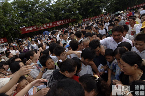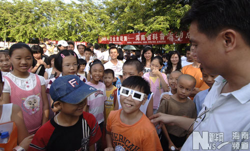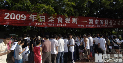 7月22日,海口市民在觀測(cè)點(diǎn)爭(zhēng)相領(lǐng)取觀測(cè)眼鏡。當(dāng)日,我國(guó)出現(xiàn)了500年一遇的大日食奇觀。海南不能觀測(cè)到日全食,只能觀測(cè)到日偏食。由于月球遮住太陽(yáng)的面積較大,這次仍將是海南歷史上罕見(jiàn)的日偏食。