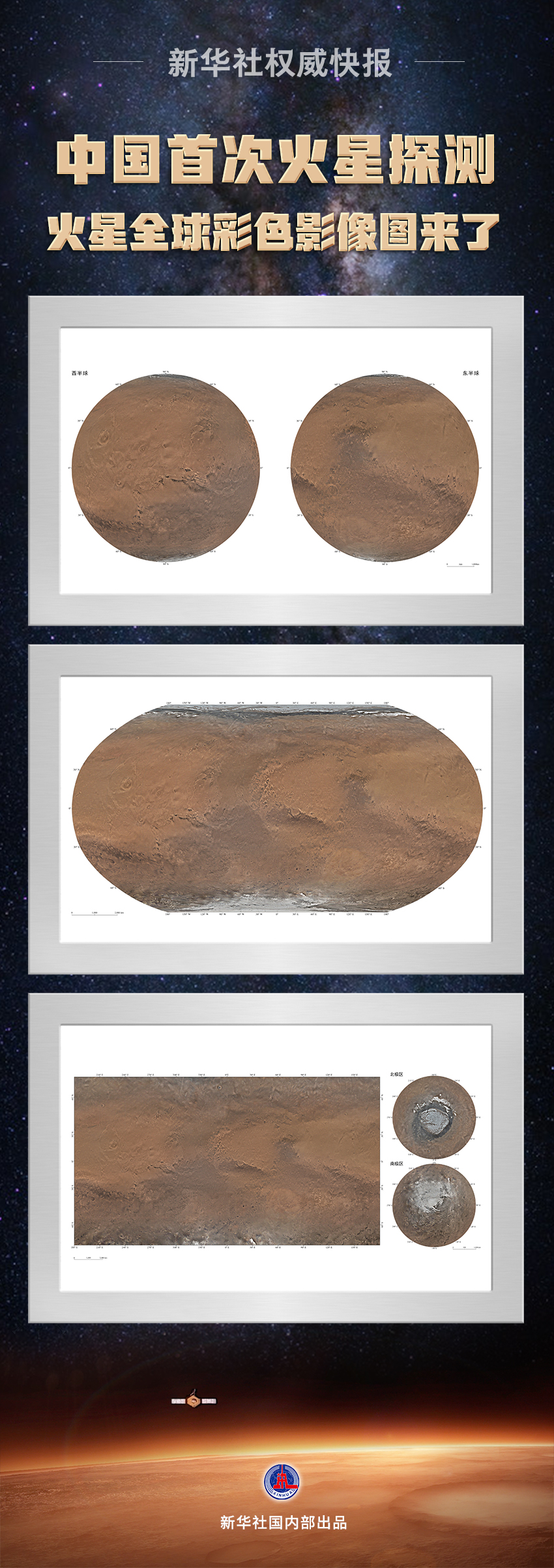 本次發(fā)布的影像圖為彩色,包括按照制圖標(biāo)準(zhǔn)分別制作的火星東西半球正射投影圖、魯賓遜投影圖和墨卡托投影加方位投影圖,空間分辨率為76米,將為開展火星探測工程和火星科學(xué)研究提供質(zhì)量更好的基礎(chǔ)底圖。