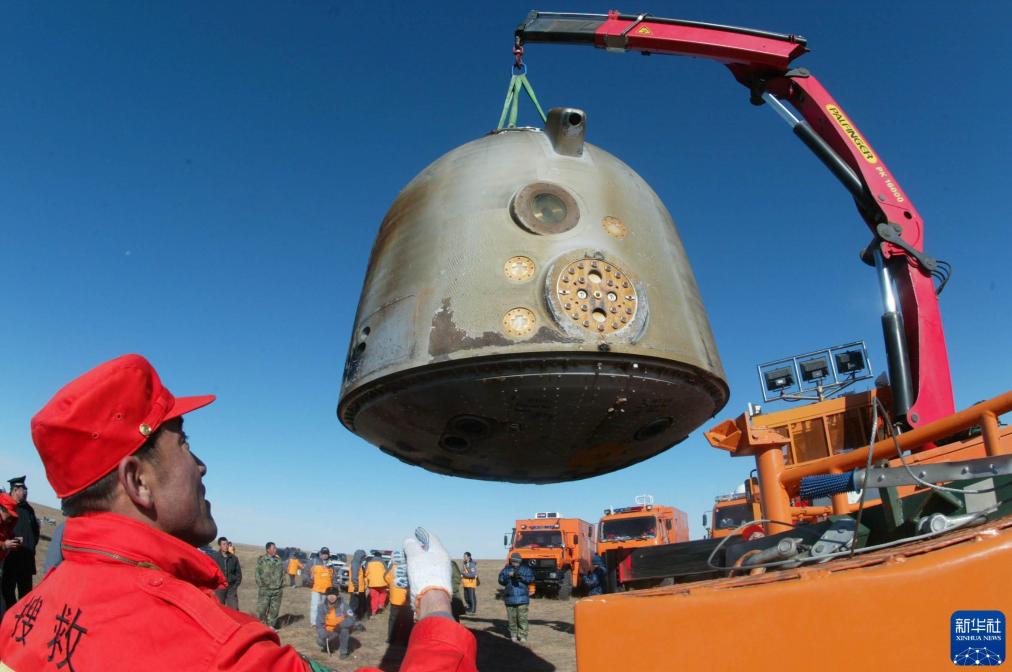 2003年10月16日,神舟五號載人飛船返回艙被運離內(nèi)蒙古主著陸場。