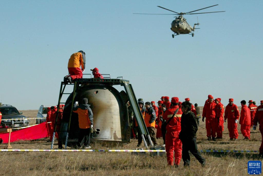 2003年10月16日,直升飛機在搜尋神舟五號返回艙。
