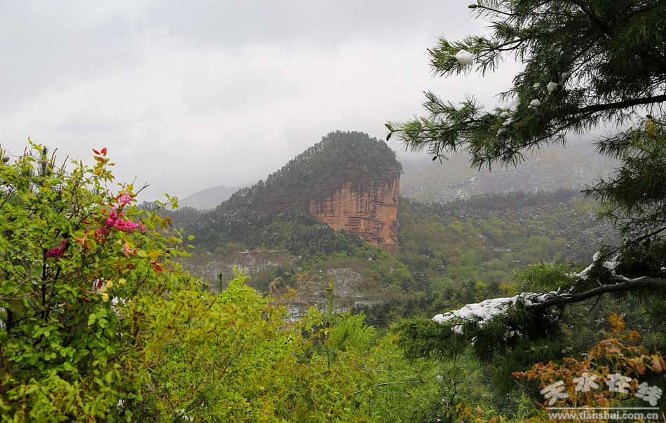 天水在線攝影報道:芳菲四月 雪落麥積山(組圖)