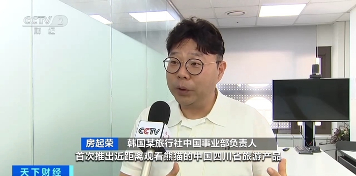 韓國(guó)某旅行社中國(guó)事業(yè)部負(fù)責(zé)人 房起榮:首次推出近距離觀看熊貓的中國(guó)四川省旅游產(chǎn)品,“熊貓游”套餐上線已過(guò)一個(gè)月,有800名顧客預(yù)約,與其他中國(guó)旅游產(chǎn)品相比,一個(gè)月內(nèi)銷量增長(zhǎng)了200%。