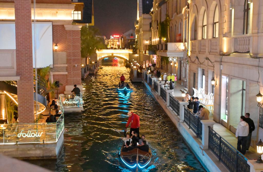 5月16日,游客乘船在大連的東方威尼斯水城游覽。新華社記者 石楓 攝