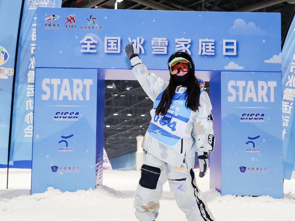12月28日,參加滑雪比賽的選手在上海耀雪冰雪世界雪場“打卡”體驗。新華社發(fā)