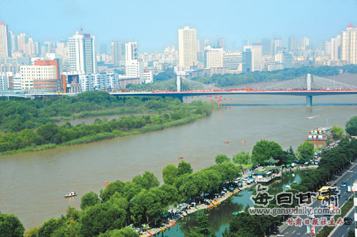 當(dāng)天,蘭州百里黃河風(fēng)情線鮮花盛開,洋溢著喜慶的氣氛,比賽的起點、終點——蘭州黃河濕地公園、中山鐵橋更成為歡樂的海洋。上午9時整,隨著省委常委、蘭州市委書記陸武成,省軍區(qū)政委傅傳玉,全國MBA教育指導(dǎo)委員會委員、秘書長仝允桓的鳴槍發(fā)令,各參賽隊伍競相出發(fā),駕馭著由主辦方統(tǒng)一提供的符合國家標(biāo)準(zhǔn)的無機(jī)械硬底漂流橡皮艇,開始了全程約10公里的自助漂流競速賽。