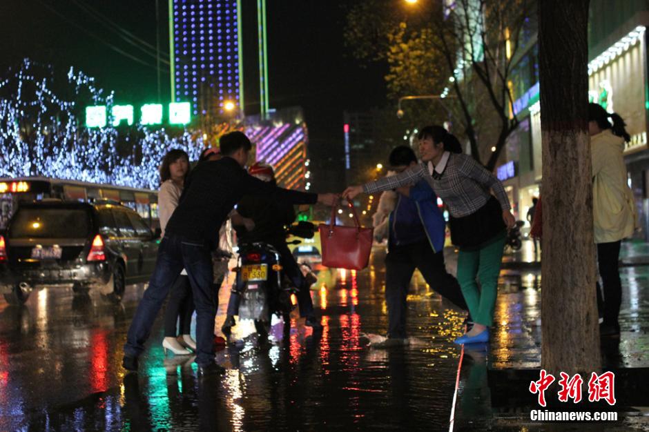 4月14日晚間,蘭州主城區(qū)突降冰雹,持續(xù)了半個(gè)小時(shí)左右,落地后片刻化成積水,來往車輛濺起水花,部分路段路邊積水沒過腳踝,造成市民出行不便。李清曉 攝