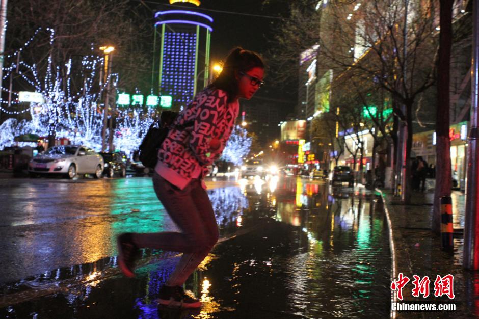 4月14日晚間,蘭州主城區(qū)突降冰雹,持續(xù)了半個(gè)小時(shí)左右,落地后片刻化成積水,來往車輛濺起水花,部分路段路邊積水沒過腳踝,造成市民出行不便。李清曉 攝 |