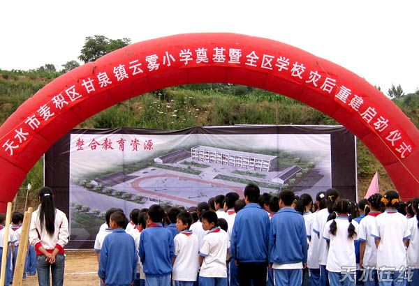 3.甘泉鎮(zhèn)云霧小學(xué)災(zāi)后重建:云霧小學(xué)現(xiàn)有7個(gè)教學(xué)班,教職工9人,學(xué)生315人!5·12”地震造成云霧小學(xué)、安莊小學(xué)、胡莊教學(xué)點(diǎn)三所學(xué)校嚴(yán)重受損,經(jīng)專家鑒定均為D級(jí)危房。為進(jìn)一步整合教育資源,優(yōu)化辦學(xué)條件,教育局將校舍恢復(fù)重建與學(xué)校布局調(diào)整結(jié)合起來,規(guī)劃新建單面三層框架結(jié)構(gòu)教學(xué)樓一幢,建筑面積1360.8平方米;新建面積162平方米的磚木結(jié)構(gòu)平房辦公室和教師宿舍各一棟,90平方米廁所一棟,校門一座,圍墻340米。該工程總投資235.7萬元,甘泉鎮(zhèn)政府先期自籌資金10.91萬元,征地10.64畝,于6月26日開工建設(shè)。目前,教學(xué)樓建設(shè)“三通一平”和地基墊層已全面完成。