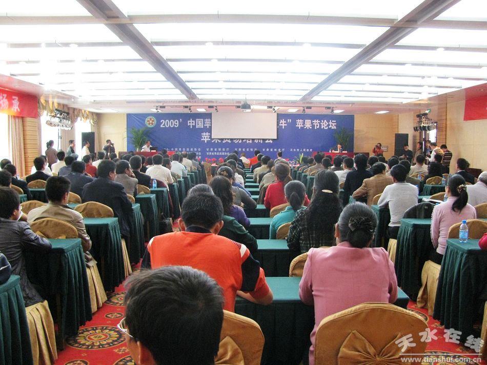 9月15日下午,隨著天水“花!碧O果節(jié)會第一項主題活動——“花牛”蘋果節(jié)論壇貿(mào)易培訓(xùn)會在麥積區(qū)山水苑酒店多功能會議室的順利召開,2009’中國蘋果年會暨天水“花!碧O果節(jié)正式拉開了帷幕。