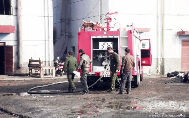 11月22日凌晨,天水典盛熱力有限責任公司給鍋爐供應水源的深井泵電源缺相燒毀電機,致使該片區(qū)的供熱鍋爐需要補充鍋爐用水時深井泵無法正常工作。當即,天水典盛熱力有限責任公司啟動應急預案,同時積極向天水市消防支隊麥積中隊求援,麥積消防中隊派班長蘇永巖率隊員李嵩、陳康、李玉春不到5分鐘趕赴天水典盛熱力有限責任公司鍋爐房,積極聯(lián)系水廠尋找水源,麥積消防中隊查看形勢后,又調派一輛消防車前來增援,同時該公司請求中石油天水分公司消防車支援,三輛消防車積極投入到鍋爐補水行動中。