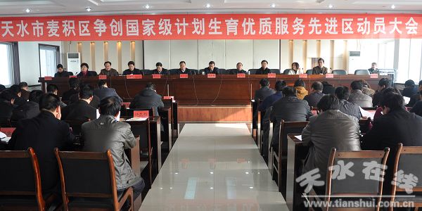 12月23日,麥積區(qū)召開爭創(chuàng)國家級(jí)計(jì)劃生育優(yōu)質(zhì)服務(wù)先進(jìn)區(qū)動(dòng)員大會(huì),會(huì)議認(rèn)真貫徹落實(shí)了國家和省、市有關(guān)會(huì)議精神,安排部署了2010年創(chuàng)建國家級(jí)計(jì)劃生育優(yōu)質(zhì)服務(wù)先進(jìn)區(qū)工作。