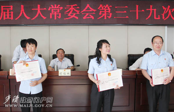 會議采取無記名投票的方式進行表決,任命李潤為天水市麥積區(qū)人民政府副區(qū)長;溫朝暉為區(qū)人民法院花牛法庭副庭長、審判員;楊婷為區(qū)人民法院北道埠法庭副庭長、審判員;李惠芳為區(qū)人民法院審判員,并頒發(fā)任命書。