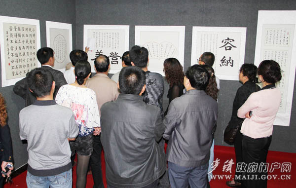 5月10日上午,原市人大副主任介滿盈書法巡回展在麥積區(qū)文化館隆重舉行。市婦聯(lián)副主席馬惠文,麥積區(qū)人大主任胡福林,區(qū)委常委、宣傳部長臧志軍,區(qū)人大副主任李加峰,區(qū)政協(xié)副主席汪懷定出席儀式并剪彩。