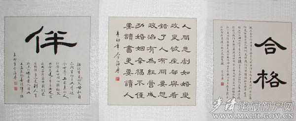 學生家長王女士參觀完展覽后感慨地說,介滿盈先生的書法展覽不僅形式新穎,內容通俗易懂,而且很有教育意義。作為家長,在孩子的家庭教育中我們應該借鑒這些好經驗,改變以往的教育方式,讓孩子在充滿愛和責任的家庭中健康成長;厝ズ,我將帶著全家來看展覽,給他們當解說員,同時,我也會把今天的感受告訴身邊在教育孩子方面有困惑的親戚朋友,讓他們也來學習學習,受受教育,從中汲取經驗,改變對孩子的教育方式。