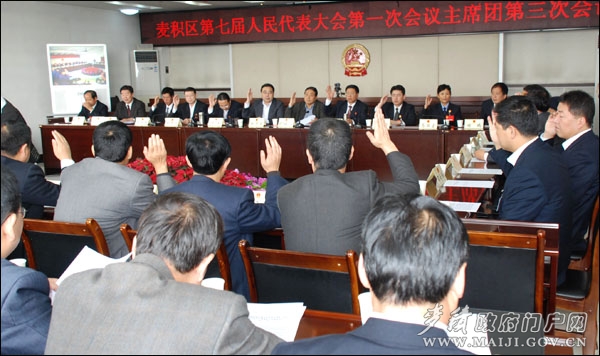 9月29日上午,天水市麥積區(qū)第七屆人民代表大會(huì)第一次會(huì)議召開主席團(tuán)第三次會(huì)議。會(huì)議應(yīng)到主席團(tuán)成員34人,實(shí)到31人,合于法定人數(shù)。