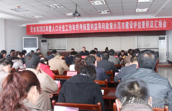 10月31日上午,天水市2011年度人口計(jì)生工作年終考核暨利益導(dǎo)向政策示范市建設(shè)評(píng)估麥積區(qū)匯報(bào)會(huì)召開(kāi)。市人口委副主任李鴻一行6人,麥積區(qū)委書(shū)記張智明,區(qū)委副書(shū)記、區(qū)長(zhǎng)何東,區(qū)委常委、宣傳部長(zhǎng)王曙輝,副區(qū)長(zhǎng)楊鐵森出席會(huì)議。