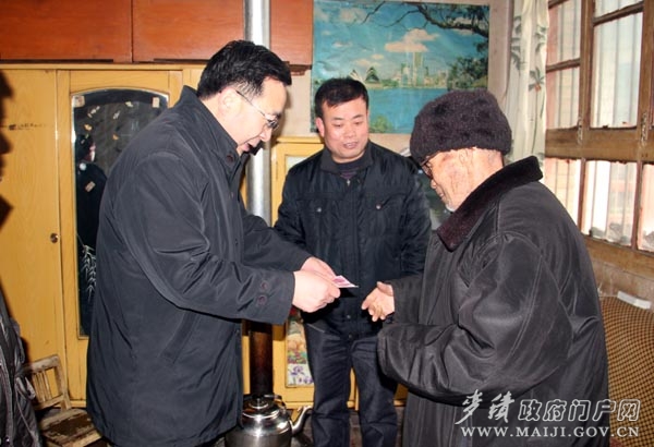 1月5日上午,區(qū)委書記張智明,區(qū)委常委、政法委書記臧志軍,副區(qū)長李潤等冒著嚴(yán)寒,來到花牛鎮(zhèn)董源村、曹埂村、高灣村和廿鋪村,走訪慰問特困群眾、低保戶、困難黨員、二女戶及復(fù)退老軍人,為他們送去慰問金和慰問品,表達區(qū)委、區(qū)政府對困難群眾的關(guān)愛之情。