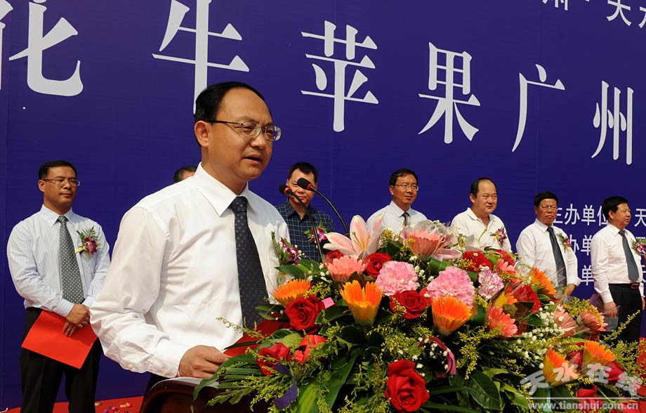 (11月3日上午10點(diǎn),由甘肅省天水市人民政府主辦,天水市麥積區(qū)人民政府承辦,天水市人民政府駐廣州辦事處、廣州市白云區(qū)萬(wàn)達(dá)廣場(chǎng)、江山酒家協(xié)辦的“中國(guó)·甘肅·天水花牛蘋(píng)果廣州推介會(huì)”,在廣州市白云區(qū)萬(wàn)達(dá)廣場(chǎng)隆重舉行。)