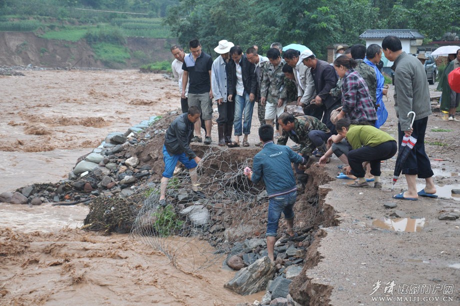 自6月份以來,麥積區(qū)多次遭遇強(qiáng)降雨天氣。氣象部門統(tǒng)計(jì),僅6月19日至20日,7月8日和7月21日,麥積區(qū)接連遭受三次強(qiáng)暴雨侵襲,最大降雨量累計(jì)超過150毫米,為50年一遇的特大暴雨。強(qiáng)降雨致使麥積區(qū)中、東路部分鄉(xiāng)鎮(zhèn)損失巨大,農(nóng)田大面積被淹,部分河堤被沖毀,橋梁、道路、通訊、電力設(shè)施嚴(yán)重?fù)p毀,農(nóng)房倒損嚴(yán)重。而7月22日的定西6.6級(jí)地震,使麥積區(qū)區(qū)域內(nèi)一些山體疏松、存在裂縫的地質(zhì)災(zāi)害點(diǎn)險(xiǎn)情加劇。