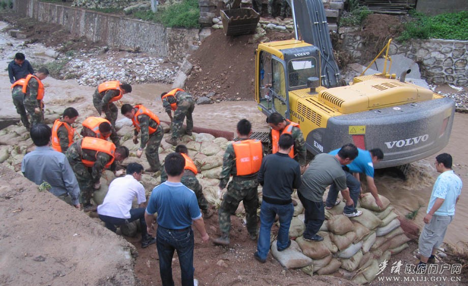 ——廣大黨員發(fā)揮先鋒模范作用。災(zāi)情發(fā)生以來(lái),全區(qū)各級(jí)黨組織共有2600多名黨員干部成立了生產(chǎn)自救崗、環(huán)境衛(wèi)生崗、社會(huì)穩(wěn)定崗,根據(jù)自身能力積極參加抗洪搶險(xiǎn)救災(zāi)工作。民政、交通、水務(wù)、建設(shè)、 國(guó)土等部門(mén)成立12支抗洪搶險(xiǎn)救災(zāi)黨員突擊隊(duì),及時(shí)調(diào)運(yùn)救災(zāi)帳篷220頂,投入大型挖掘機(jī)57臺(tái)、鏟車(chē)36臺(tái)、裝卸車(chē)8輛,發(fā)放棉被600多床、方便面59箱、礦泉水5016瓶。麥積鎮(zhèn)紅羅村黨員溫曉明、張建成、溫阿中始終發(fā)揮先鋒模范作用,組成黨員先鋒隊(duì)不分晝夜全力開(kāi)展排險(xiǎn)加固工作,有效防范了次生災(zāi)害發(fā)生。甘泉鎮(zhèn)峽門(mén)村黨員胡世保連續(xù)兩天兩夜沒(méi)合眼,全程參與救災(zāi),為全村黨員樹(shù)立了榜樣。同時(shí),在轄區(qū)內(nèi)開(kāi)展重點(diǎn)項(xiàng)目施工建設(shè)的中鐵二十一局、十局、十二局、十三局等單位黨組織和駐區(qū)部隊(duì)官兵,與當(dāng)?shù)仉娏Α⒁苿?dòng)、電信、聯(lián)通等單位的黨員突擊隊(duì)積極發(fā)揚(yáng)“一方有難、八方支援”的精神,分赴災(zāi)情第一線,積極開(kāi)展重點(diǎn)險(xiǎn)段的除險(xiǎn)救援工作。