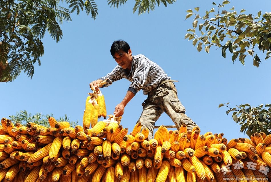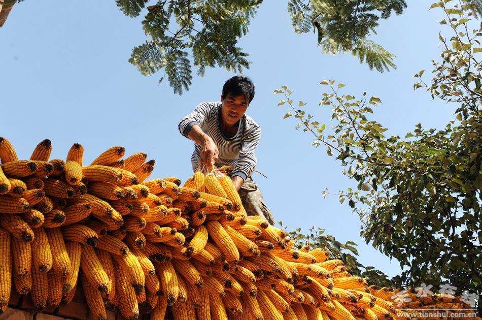 10月9日,麥積區(qū)琥珀鄉(xiāng)馬家坡村民吳錄保正在自家院墻上晾曬玉米。麥積區(qū)今年玉米平均畝產(chǎn)達500公斤,其中15.31萬畝全膜雙壟溝播玉米高產(chǎn)創(chuàng)建示范點平均畝產(chǎn)達到700公斤以上,預(yù)計總產(chǎn)量達12萬噸,全區(qū)22萬畝玉米喜獲豐收。