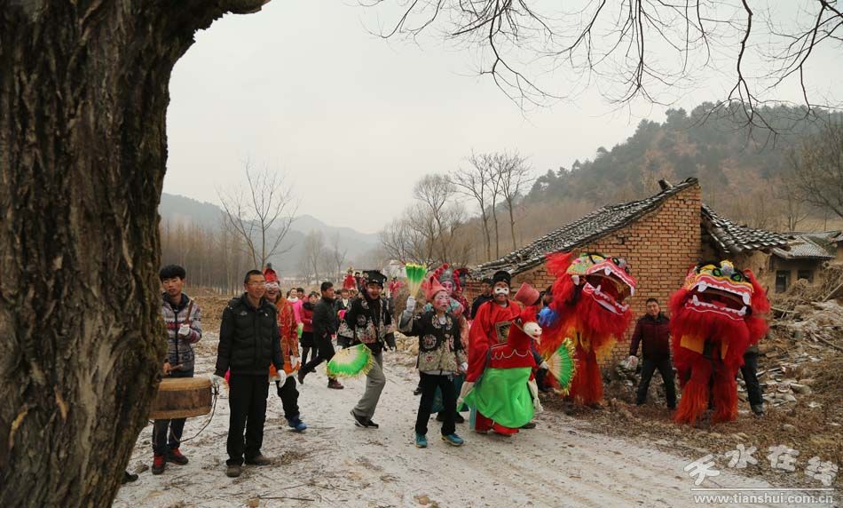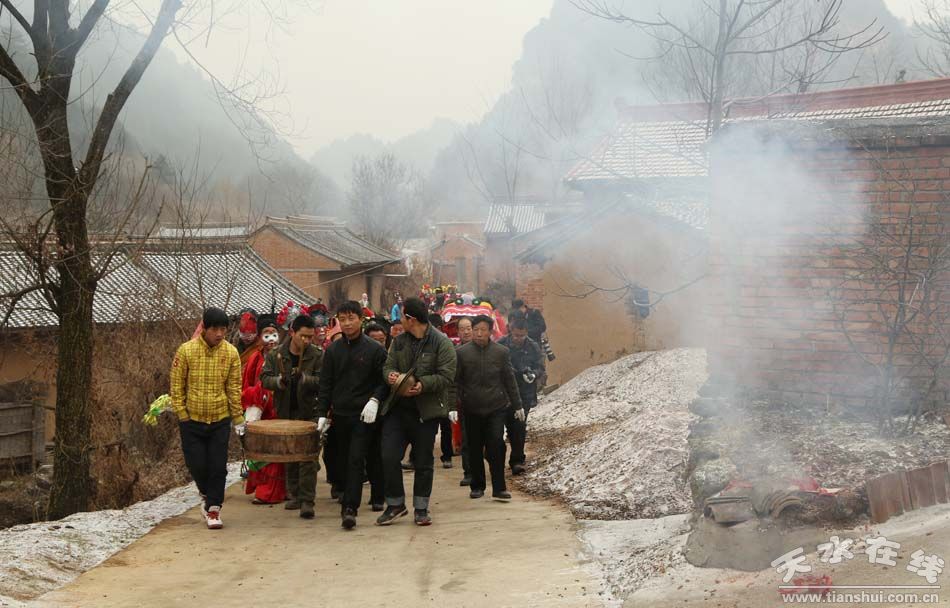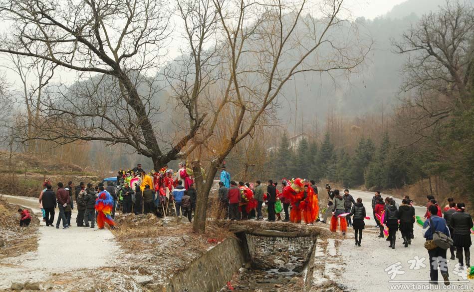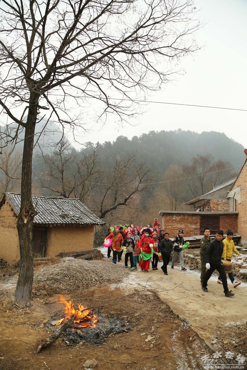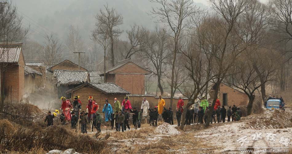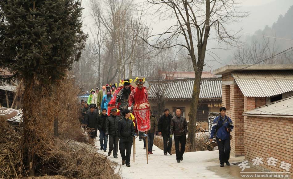 (麥積區(qū)后川村社火隊大年初五立春日走村串戶耍社火)