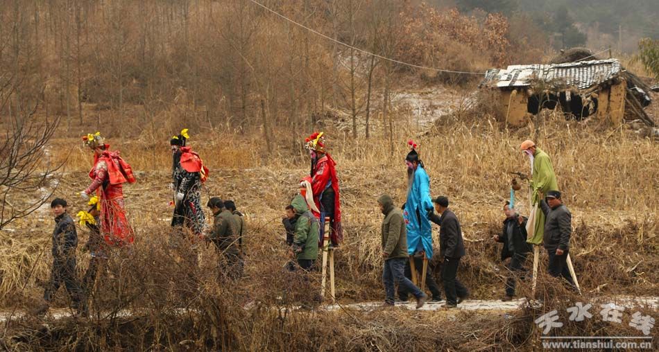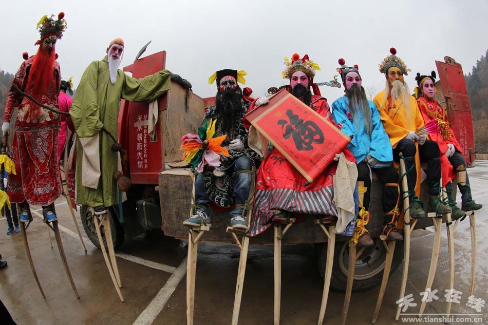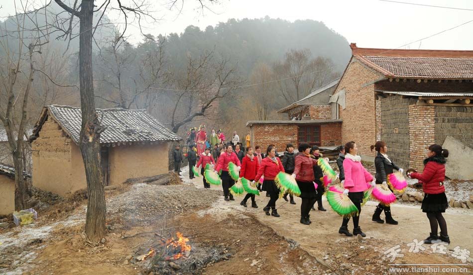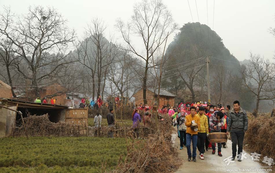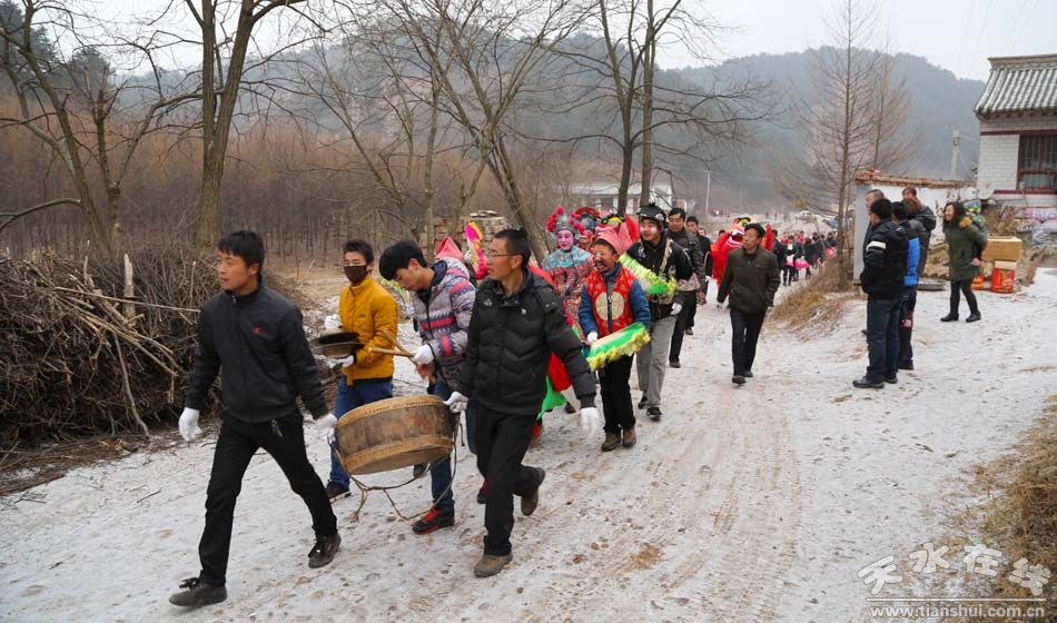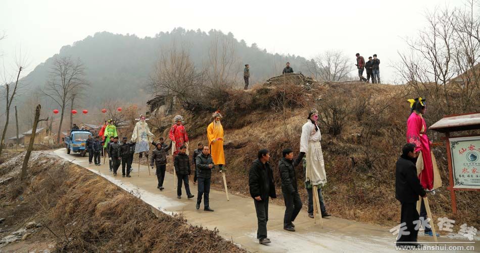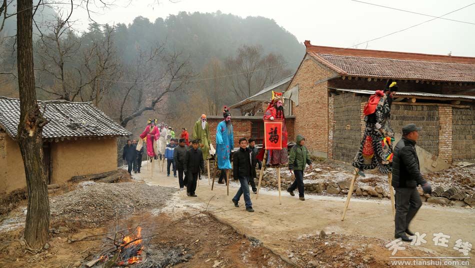 (麥積區(qū)后川村社火隊大年初五立春日走村串戶耍社火)