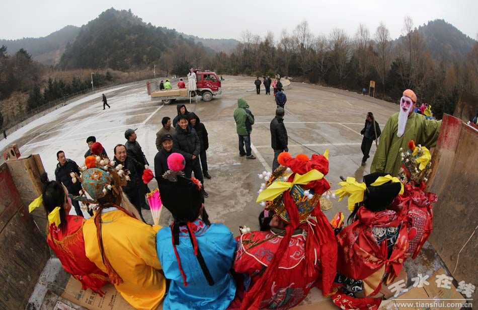2月4日,農歷正月初五(立春),久旱無雨雪氣候偏暖的冬日在立春的這一天突然變得異常寒冷,天空零零碎碎的飄起了雪花。當天中午時分,頂著寒風,冒著細雨雪花,天水在線一行驅車趕往后川村拍攝社火表演。