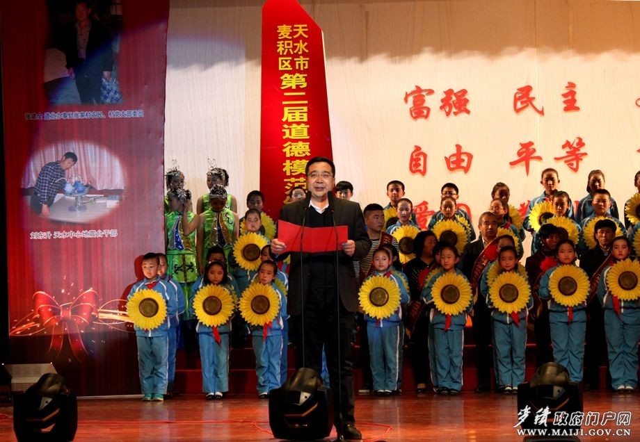 4月23日下午,麥積區(qū)政府禮堂座無(wú)虛席,掌聲陣陣。由麥積區(qū)委宣傳部、文明辦、文廣局、教體局主辦的第二屆道德模范頒獎(jiǎng)典禮在這里隆重舉行。區(qū)領(lǐng)導(dǎo)張智明、成少平、楊續(xù)祥、張永剛、喬振華、王曙輝、石勝利、張國(guó)平出席典禮并為道德模范人物頒獎(jiǎng)。